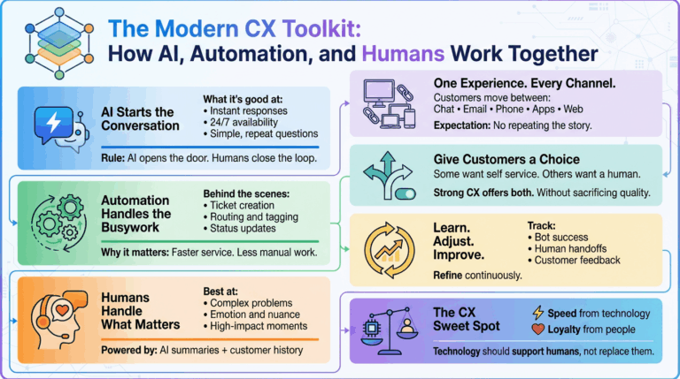 In customer experience, technology shows up in almost every interaction. It helps teams respond faster, personalize conversations, and support more customers without overwhelming staff. But even with all these tools, one thing hasn’t changed… the human connection still carries the most weight. As businesses adopt AI, automation, and new digital channels, the real challenge becomes finding the right balance between efficient technology and genuine human care.